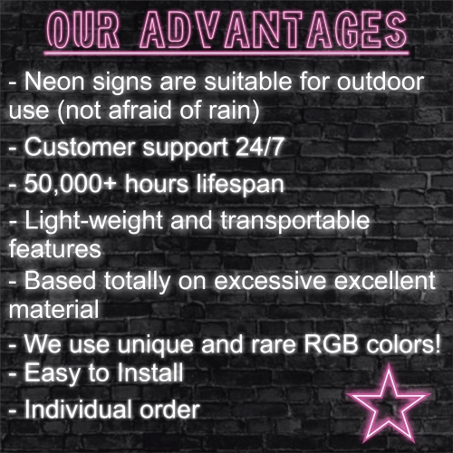 The advantage of our neon sign is that such lamps give an intense uniform light, it can be seen from afar, it is very bright, but does not hit the eye.